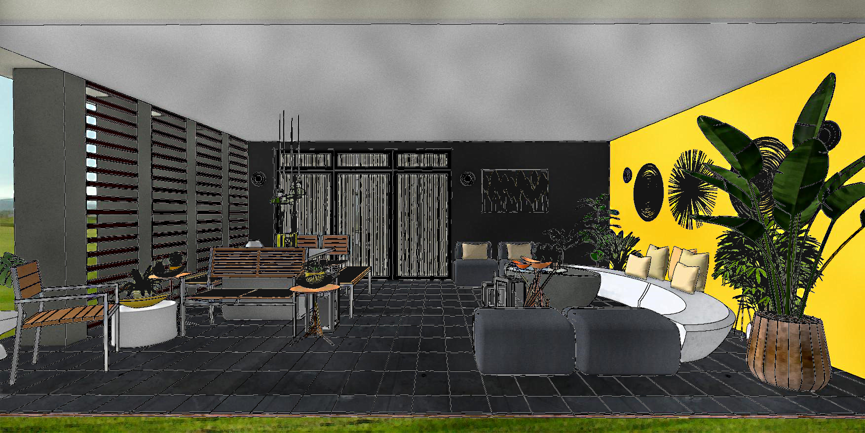 Conceptional Design: Inspired by Pantone's selection of colours for 2021 - Bright (Minion) Yellow & shade of Grey Software: Chief Architect Home Designer Pro 2019 & 3Ds Max Render Engine: 3Ds Max - ART PRE: Photoshop Furnishes & Fixtures: #Vibia #Brokis #LandscapeForms #EldoradoOutdoor Furniture & Accessories By: #B&BItalia #MGBlair #Braid #MaisonsDuMonde 3D Models: #3DHUB C&C Welcome