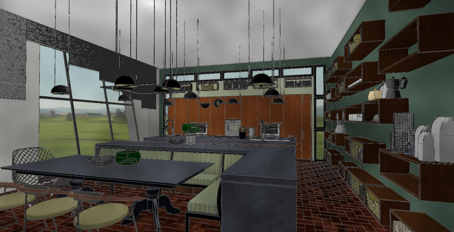 Conceptional Kitchen Design: Double Island Kitchen With Diner Sofa Based Breakfast-nook Software: Chief Architect Home Designer Pro 2019 & 3Ds Max