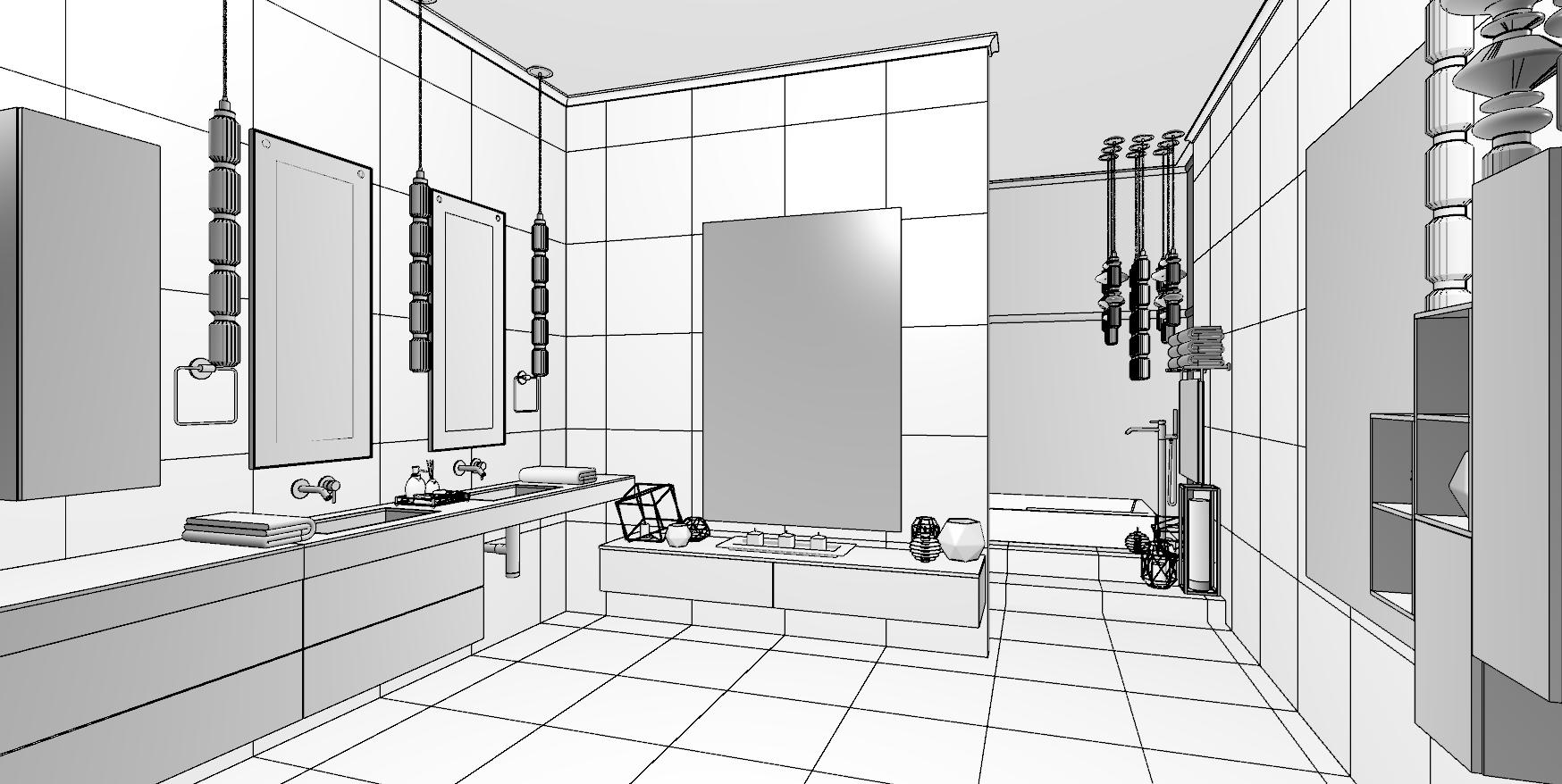 Courtyard Bathroom - Perspective Technical B&W