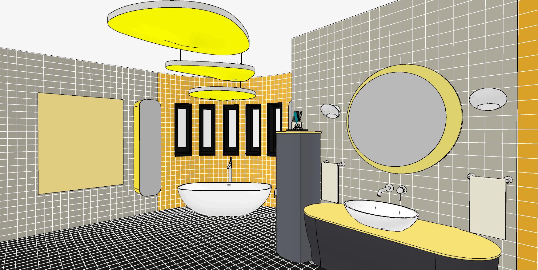Retro Bathroom - Vector Perspective View Colour