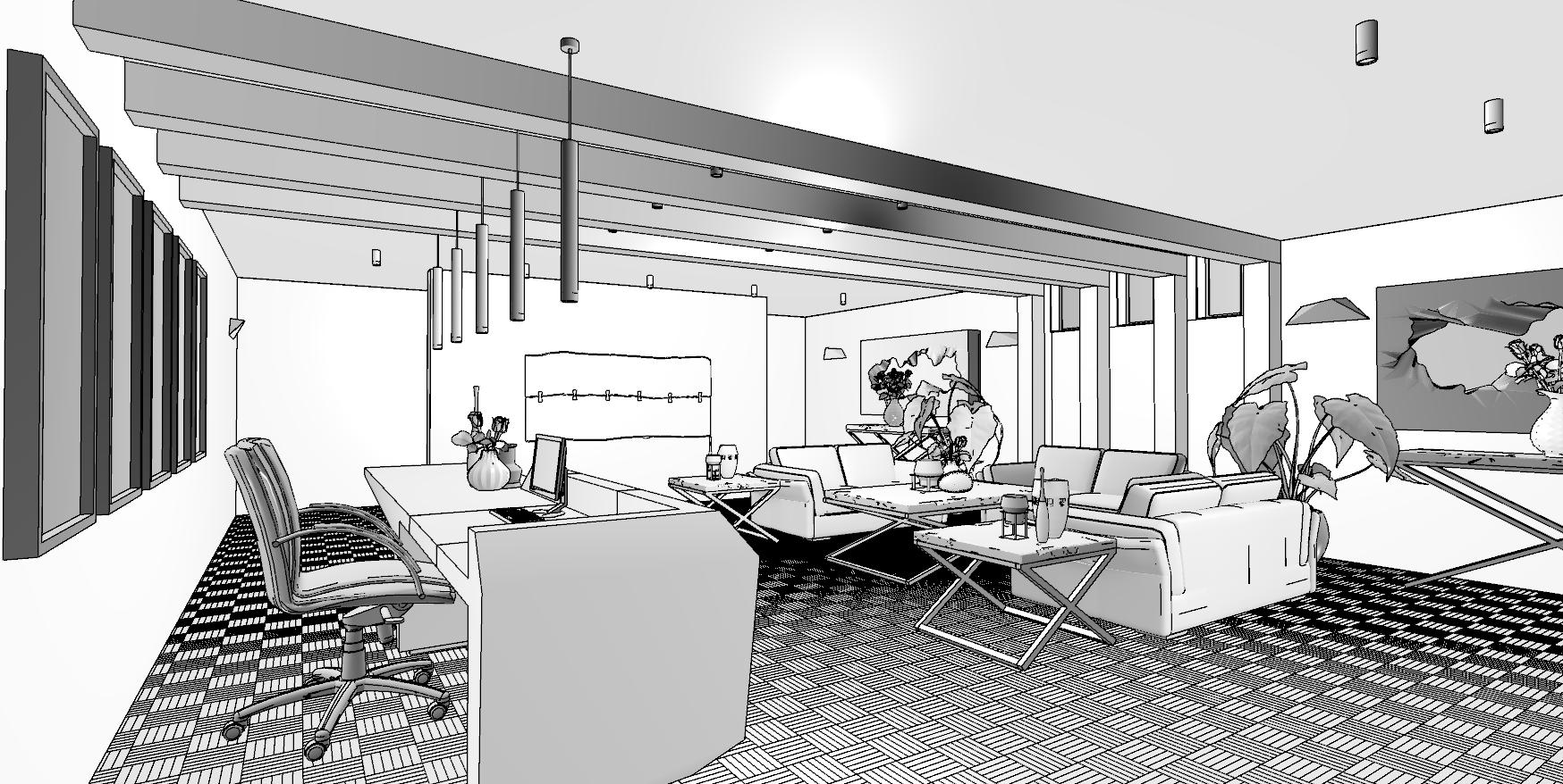 Commercial Waiting Area April 21-02 Left Perspective Technical B&W.jpg