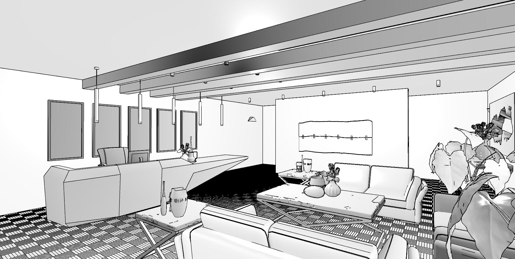 Commercial Waiting Area - Perspective Technical B&W