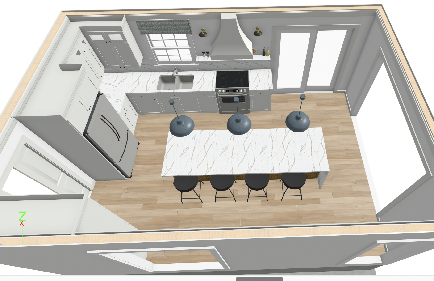 Remodeled a narrow kitchen to allow for good traffic flow and a modern look.