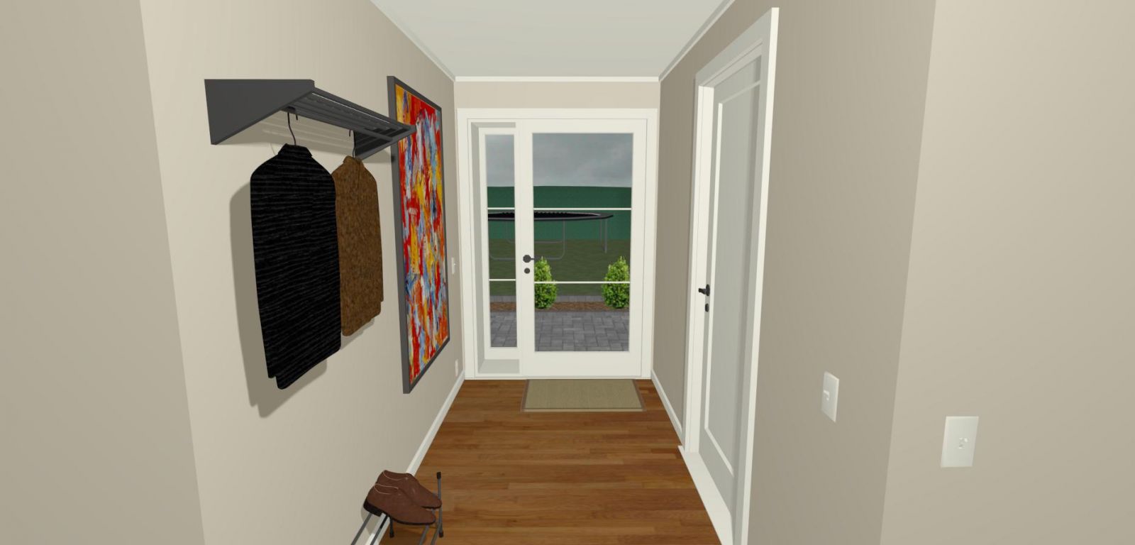 Fewer and fewer homes have a separate entry area. Most homes combine the entry with the laundry area. We are very relaxed people, and do not mind that guests can see our laundry. Besides, we experience rain and mud so often that we need an area where we can dump our wet clothes. And since everyone have these issues we do not hide it from the guests.