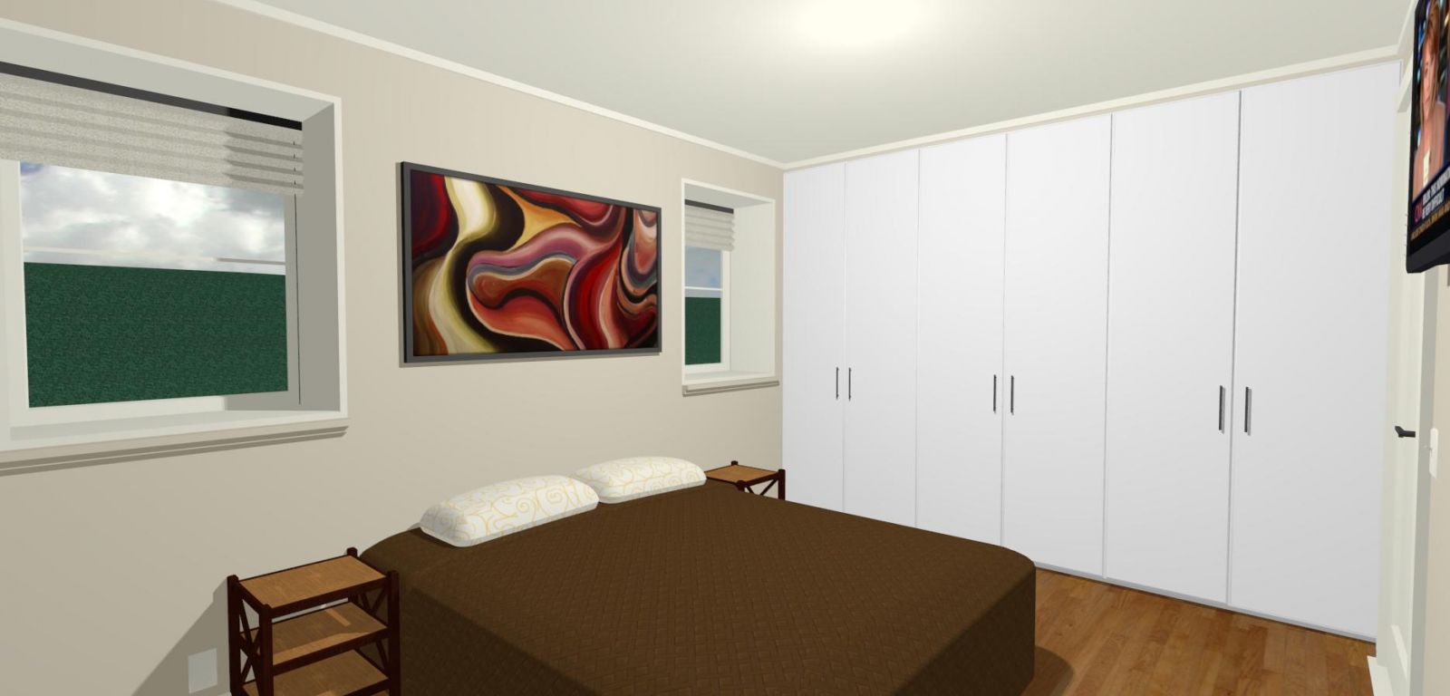 Bedrooms are very simple. With a lot of cabinet space. I chose IKEA cabinets here as well.