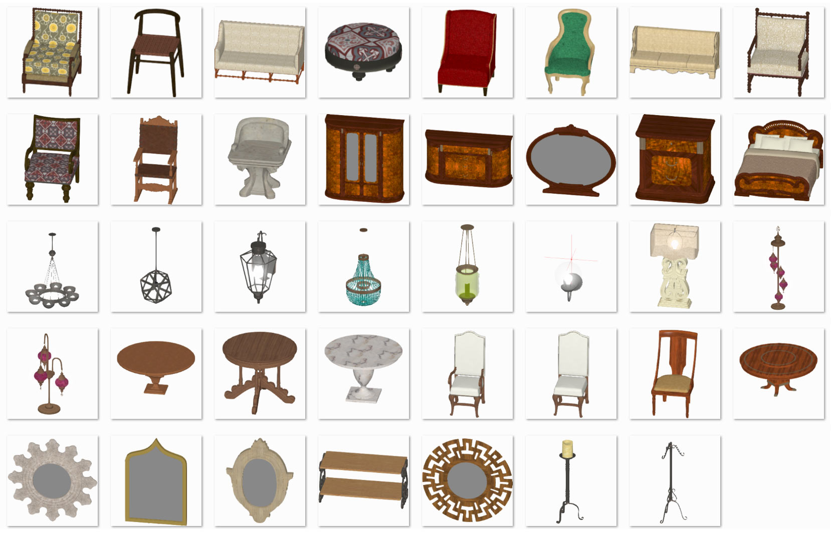Furniture, accessories, and lighting inspired by the Mediterranean region. Spice up your scenes with these fun elements.