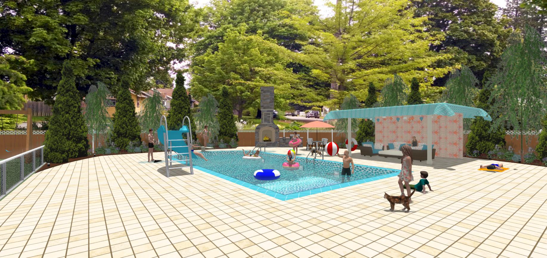This is I think my 3rd attempt at creating a backyard pool. (I would appreciate  any tips!) I had hoped to make it multi-level, but I could not get that to work and look right.