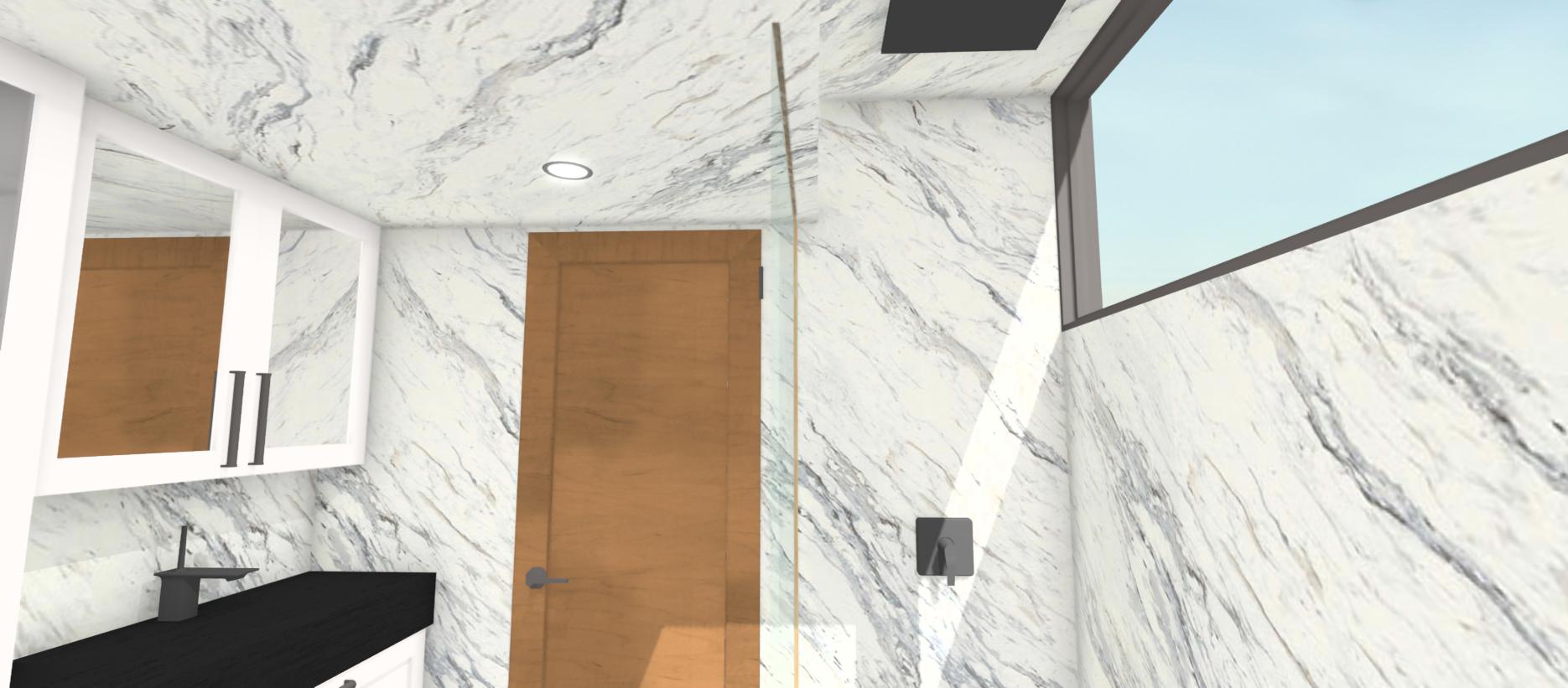 Splitting the loft area into 2 sections allowed me to do a full-height (96") shower underneath.
