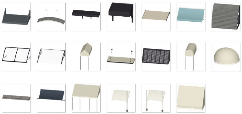 Awnings and window shades add custom detail for commercial and contemporary designs.