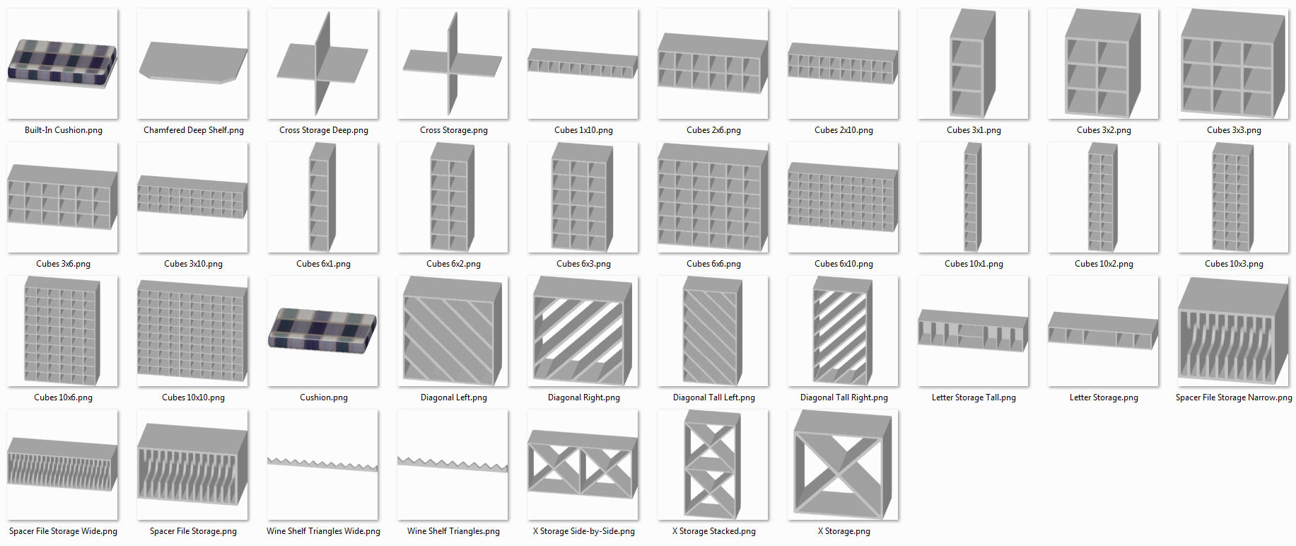 X9/2018 and prior attach these storage pieces to Cabinets as Door Panels to automatically create customized cabinets great for office, wine, mudroom, or any other design with unique storage needs.