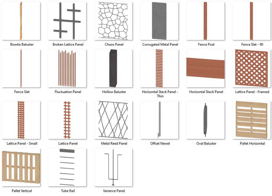 Set boundaries in your designs with these fencing panels and posts. Defining a fence with balusters, no top or bottom rail, and without newels opens up the possibility of creating free-form shapes.