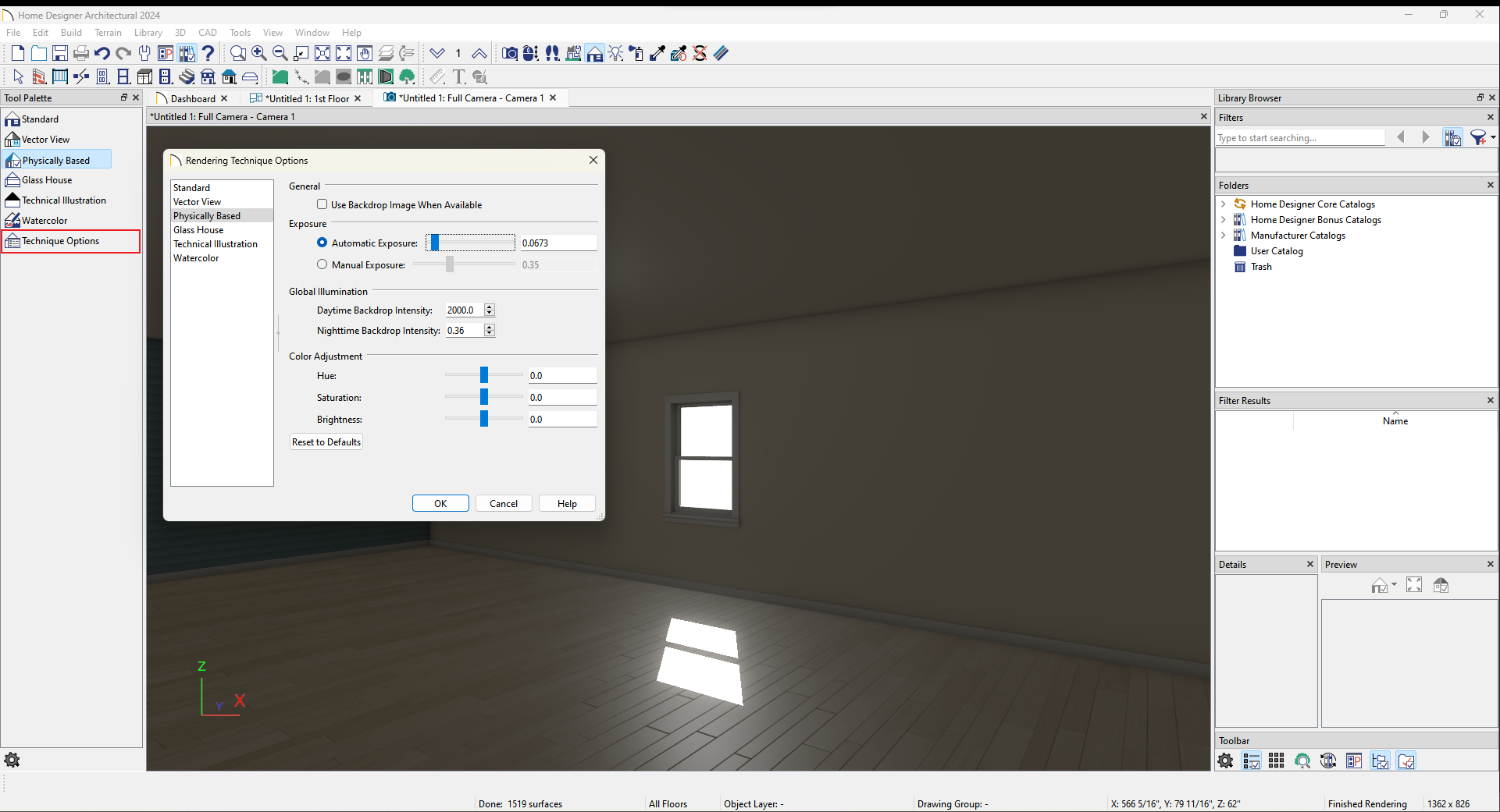 Thanks for looking at this. I have HD 2024 so dont have the exposure settings. It's strange using dusk sunlight it doesn't accurately let light in through the windows. It automatically overlights the room when you enter, and you can see the light is dramatically brighter than outside (magical lighting). I have turned off the automatic light settings and added a lamp to override but it still automatically lights up the room, and seems no way to override this to use natural outside sunlight. It seems it's designed to be on or off in some generic way, designed first and foremost for best illustrative lighting conditions but not realism.